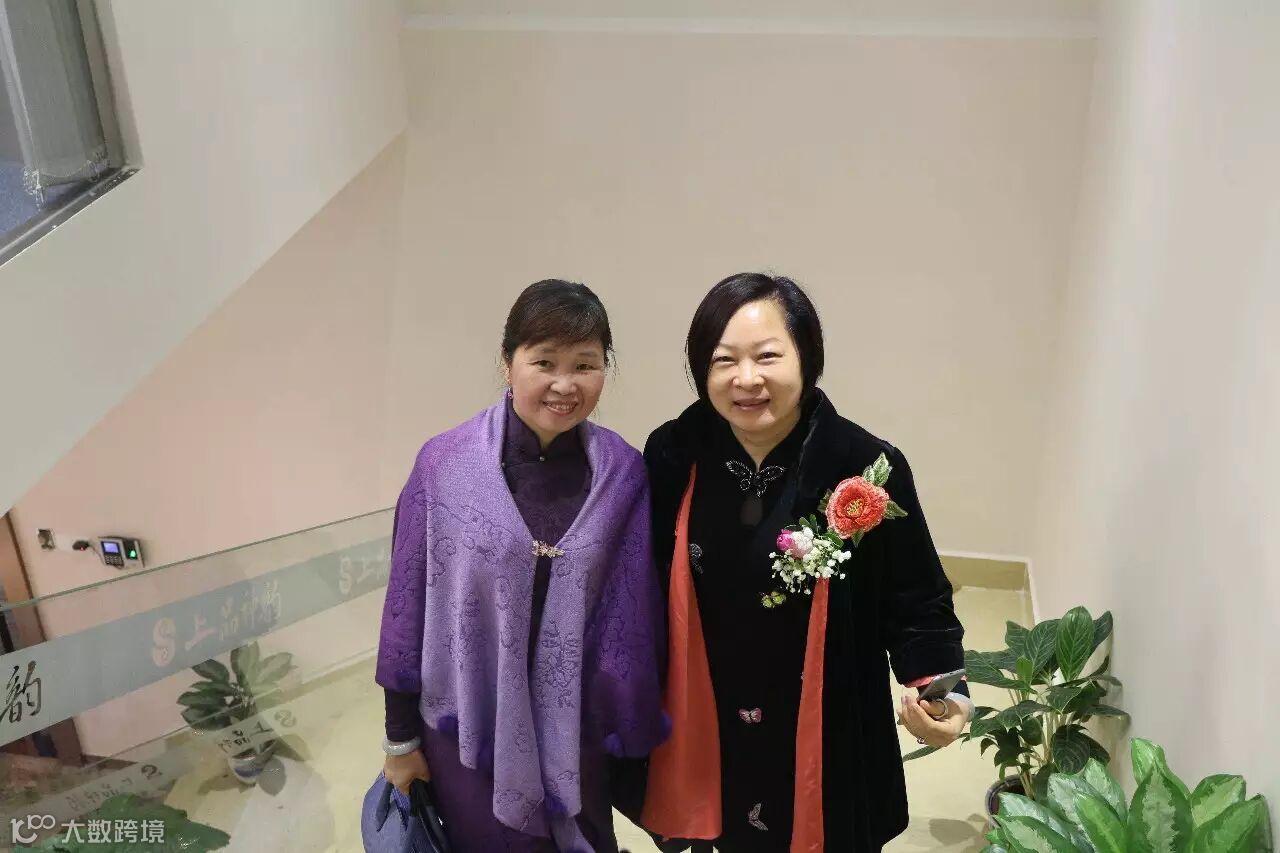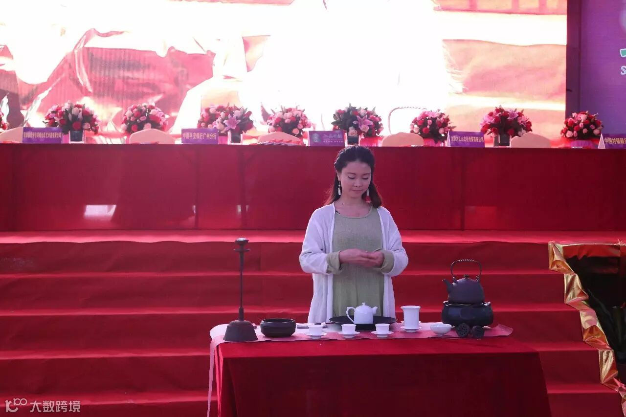 图为四会市青年商会会长江灿权向上品神韵董事长卓玛措赠送商会礼品,并祝生意兴隆、财源滚滚!