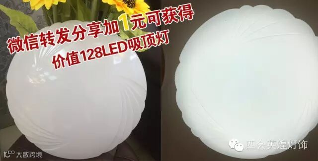 【英煌灯饰】太震惊了,我真的1元买到LED吸顶灯,1元,就是1元!12月12日-31日英煌灯饰年终大惠战,任性到底!1000支LED吸顶灯1元微信抢购。到店微信转发分享加1元可获得价值128元LED吸顶灯,1元抢购,1元抢购,1元抢购,重要事情说三遍!!快快行动,数量有限~~