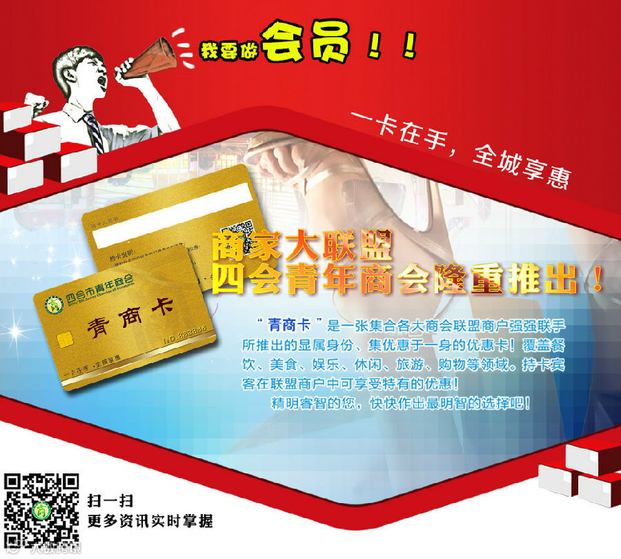 ·优惠便利,消费者凭此卡可以在青商卡联盟商家消费,享受优惠,积分功能;