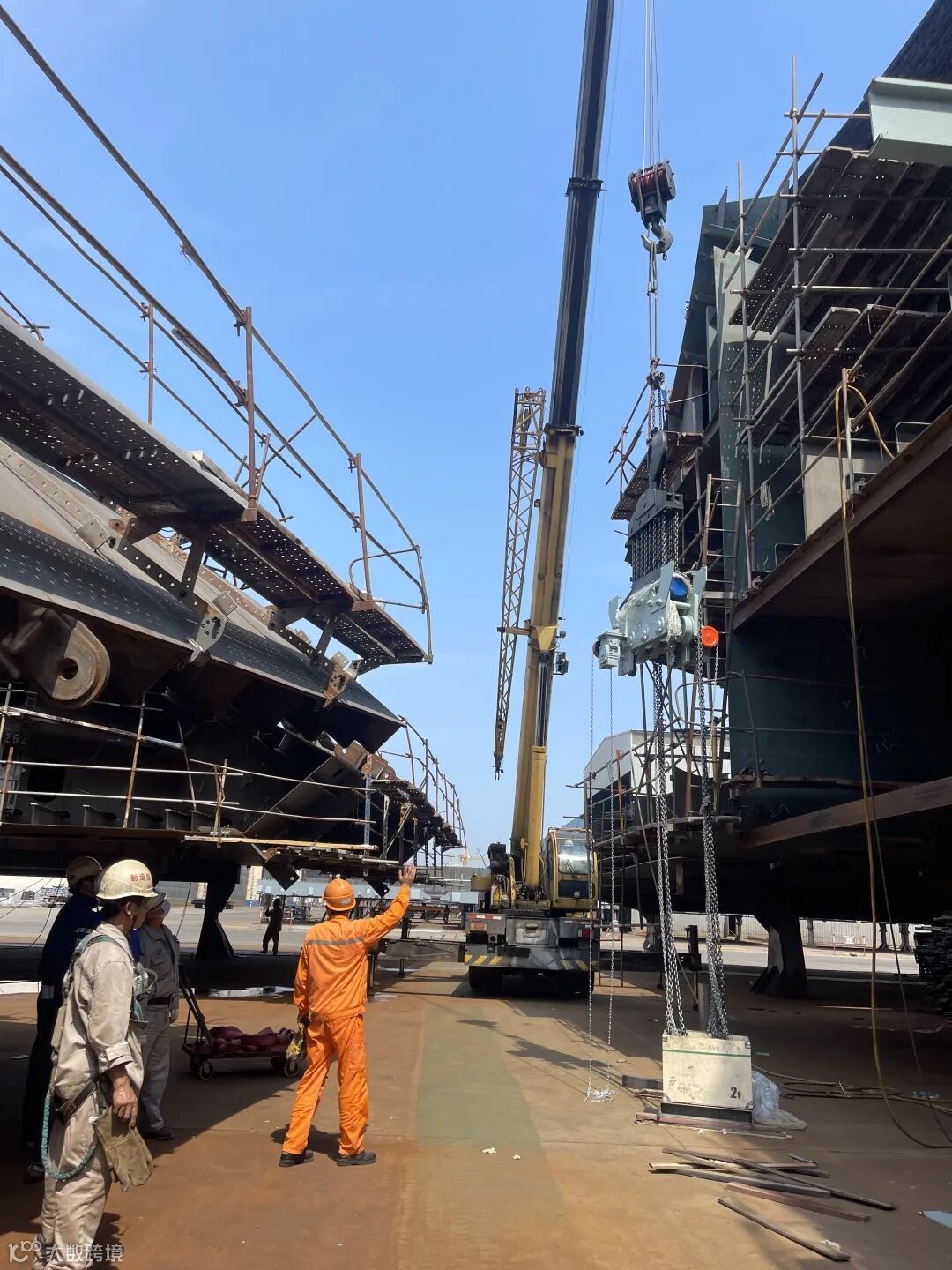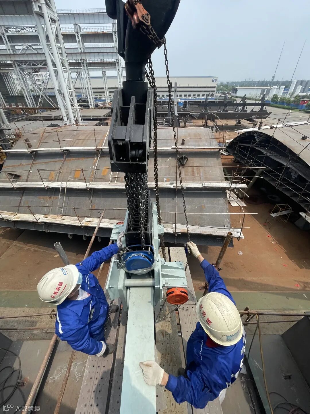 近日,公司为沪东中华造船有限公司建造的24K TEU H1866A-AG33C机舱分段首次起吊梁拉力试验取得圆满成功,为后续大吨位拉力试验积累了宝贵经验。