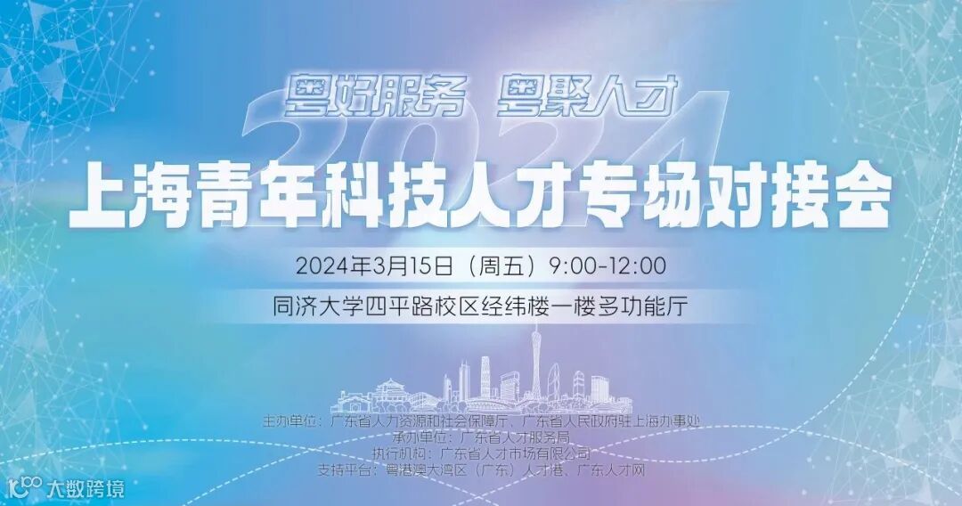 为深入学习贯彻党的二十大精神,落实人社部开展“2024年全国公共就业服务专项活动”部署要求,引进上海青年科技人才助力广东高质量发展,推进粤港澳大湾区高水平人才高地建设,拟定举办“粤好服务·粤聚人才”系列活动——2024年上海青年科技人才专场对接会。
