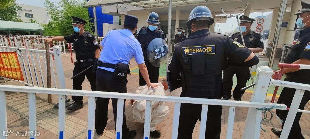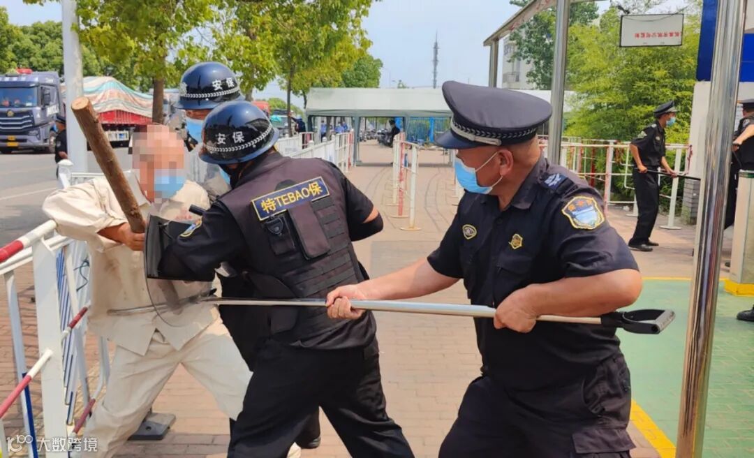 本次演练模拟两名社会人员手持棍棒意图强行闯入,袭击⽆辜⼈员,制造恐慌。门卫保安见状后立即启动突发事件应急预案流程措施,手持防暴盾牌、钢叉等与两名社会人员展开周旋,并通过对讲机呼叫上报请求支援,安环保卫部立即调取附近岗位保安人员立即前往进行支援,并迅速拨打报警电话。在保安队全体队员的密切配合下,手持棍棒的两名社会人员被迅速控制在墙角。警情就是命令,接到报案电话,芦潮港派出所民警迅速赶往现场,随后保安协助配合将两名社会人员移交压至民警处理。