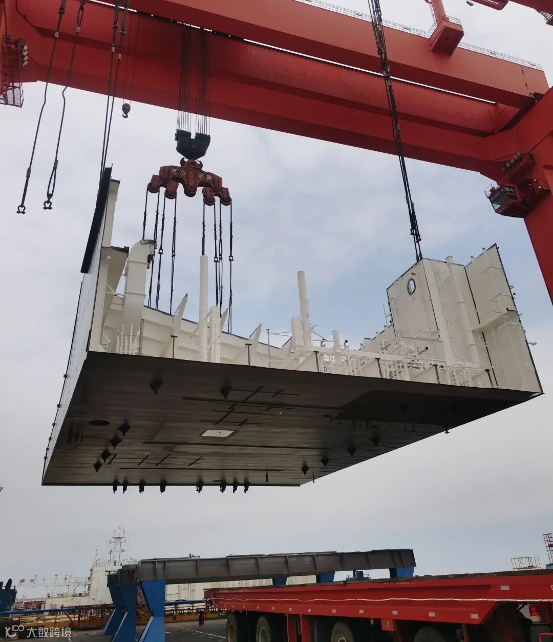 5月26日,公司第二批完工分段装船发运,此次装船分段包含舷侧、尾部机舱及船头总段,合计1550吨。