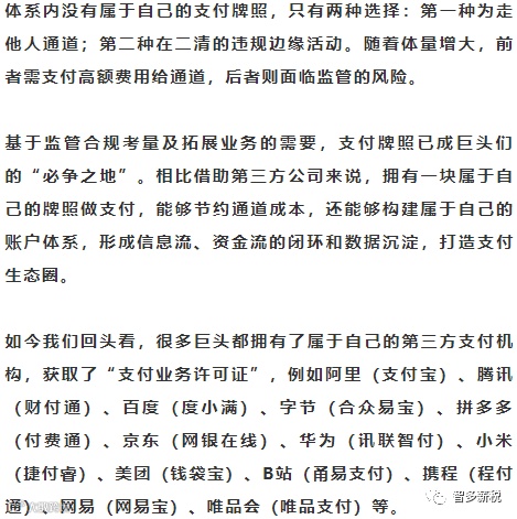 布局新经济生态链的企业需要一张税收委托代征资质,有点类似于当年这些企业通过各种方式并购获取支付机构的控制权,来拥有一张第三方支付牌照——支付业务许可证一样。