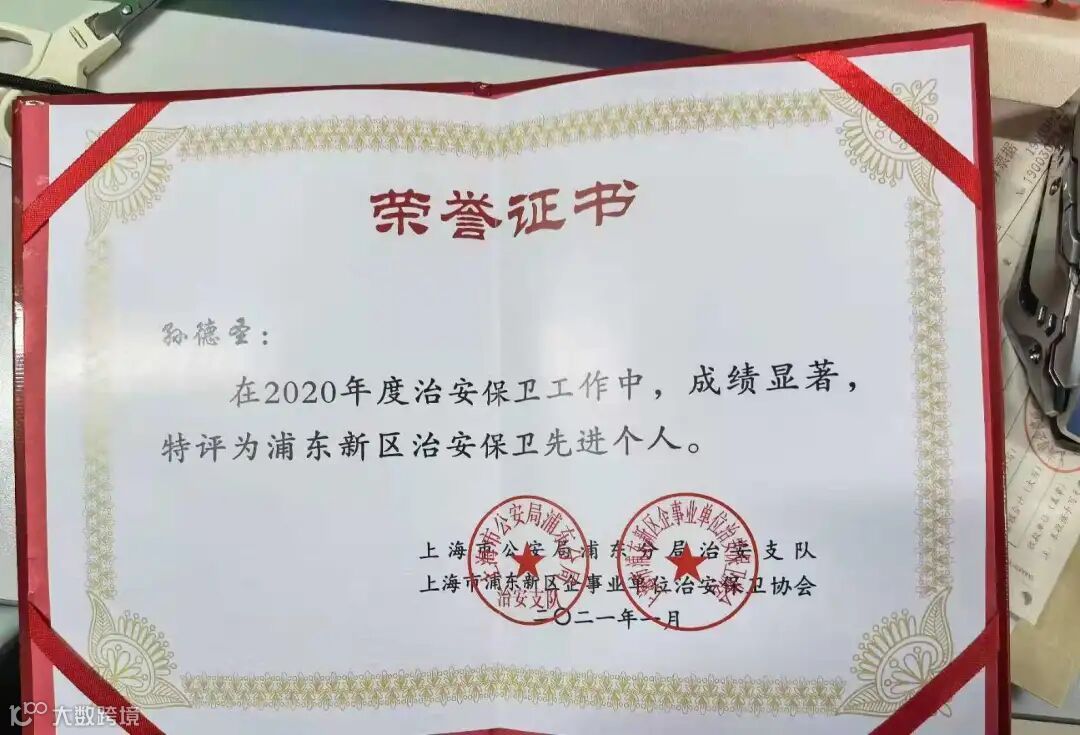 同时,安环保卫部保安保卫室主任孙德圣被授予“2020年度浦东新区治安保卫先进个人”称号。