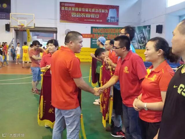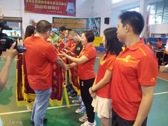 十六、四会市青年商会会长江灿权颁发“全民健身●突出贡献”锦旗