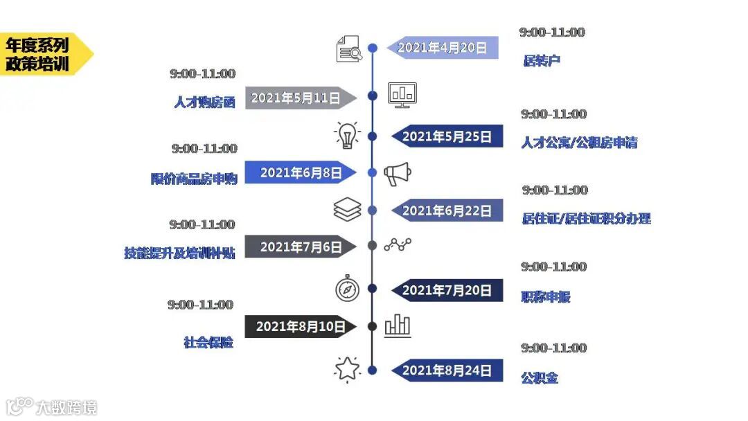 本年度培训共十项内容,包括人才引进落户、居转户、人才购房函、人才公寓/公租房申请、限价商品房申购、居住证办理/居住证积分办理、技能提升及培训补贴、职称申报及社会保险和公积金等。