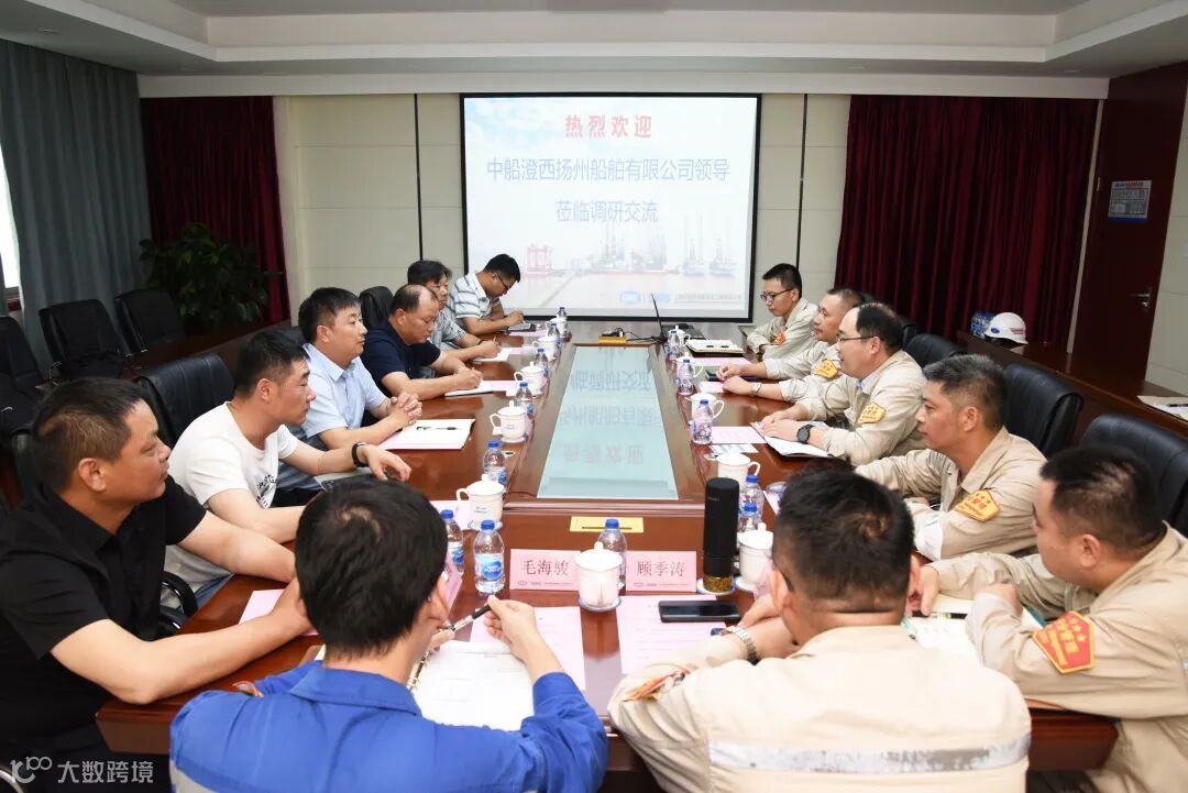 交流会上,双方就精细化质量管理推进措施、基层班组质量管理能力建设、分段完整性质量控制举措、上建完整性(商品化)建造经验、生产管理模式优化等进行了深入交流与探讨。随后,罗伏祥一行前往T排流水线、上建总组场地、海工码头等生产区域参观,实地了解公司面向生产的全流程质量管理举措实施情况。