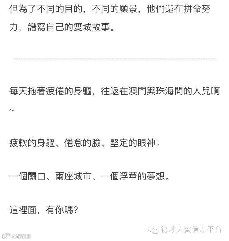 找澳门工作,欢迎联络珠海德才HR!