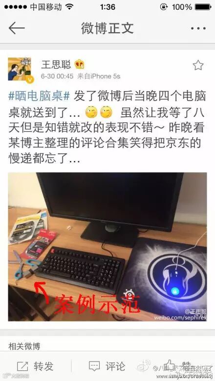 最后,国民老公 @王思聪 看到这条帖子,迅速地转发了该条微博,并愉快地向网友们分享了炫富的正确姿势……