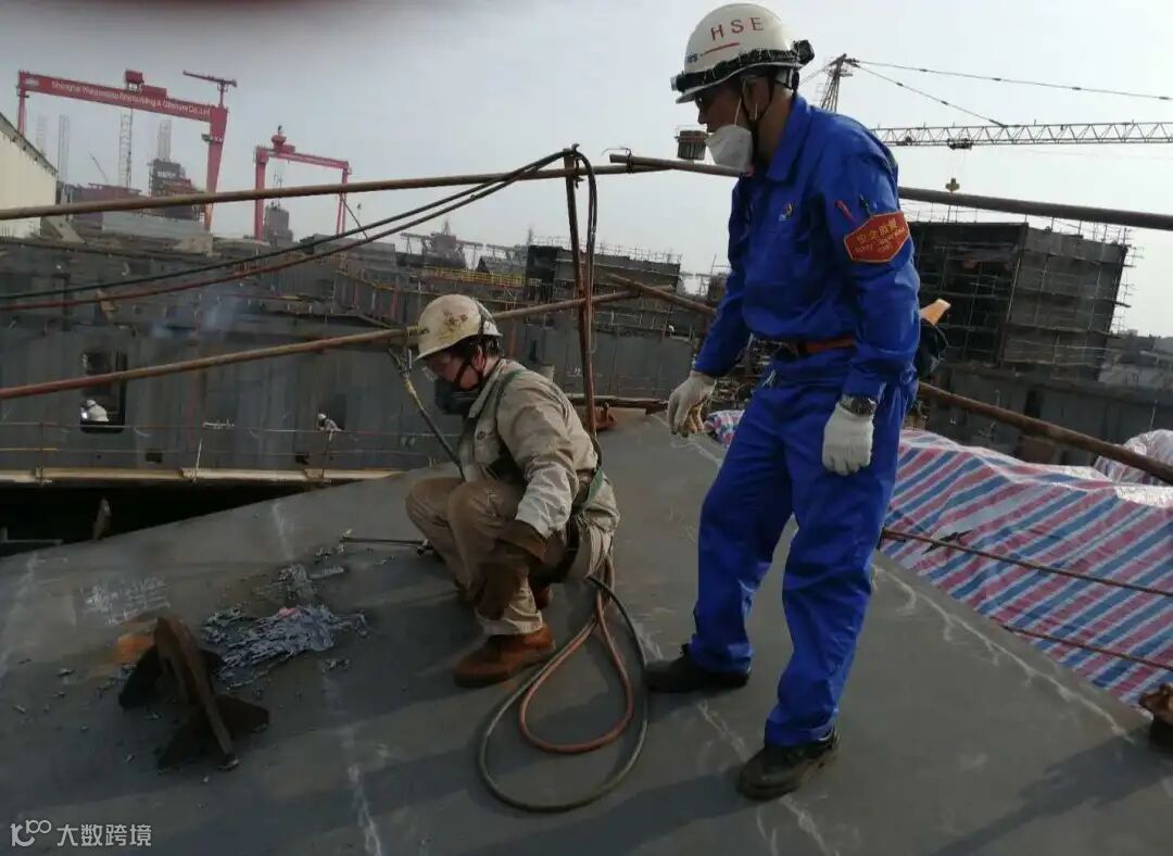 在外高桥海工的厂区里,有一群人,他们在酷热的天气下依然进行着辛勤劳动,坚守岗位,挥洒着汗水。