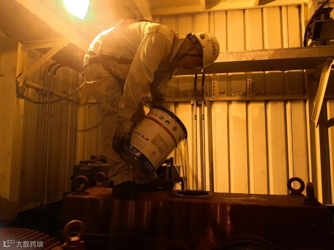 对1200T起重机小车起升结构齿轮箱更换润滑油