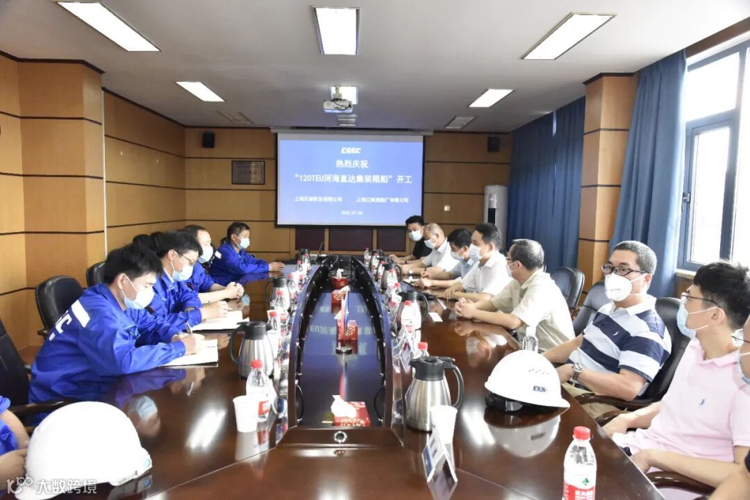 7月8日,中船上海公司上海江南造船厂有限公司为上海汉唐航运有限公司建造的120TEU船首制船开工仪式在公司经营和生产管理部下属钢结构工程部8号车间举行。