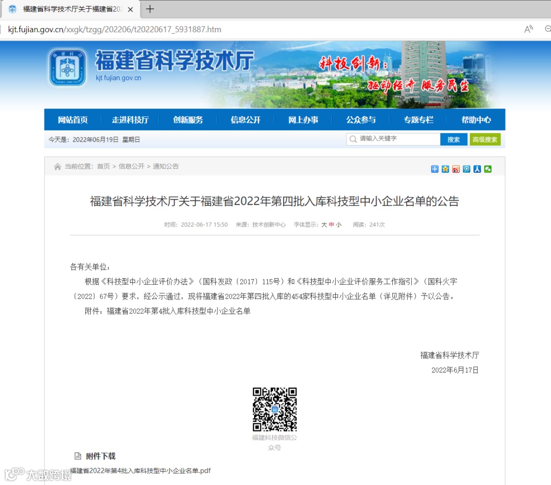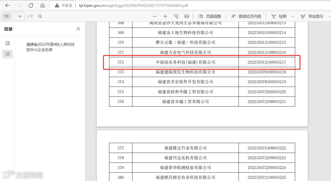 根据《科技型中小企业评价办法》(国科发政〔2017〕115号)和《科技型中小企业评价服务工作指引》(国科火字〔2022〕67号)要求,我司中海创水务科技(福建)有限公司成功入选为:科技型中小企业。