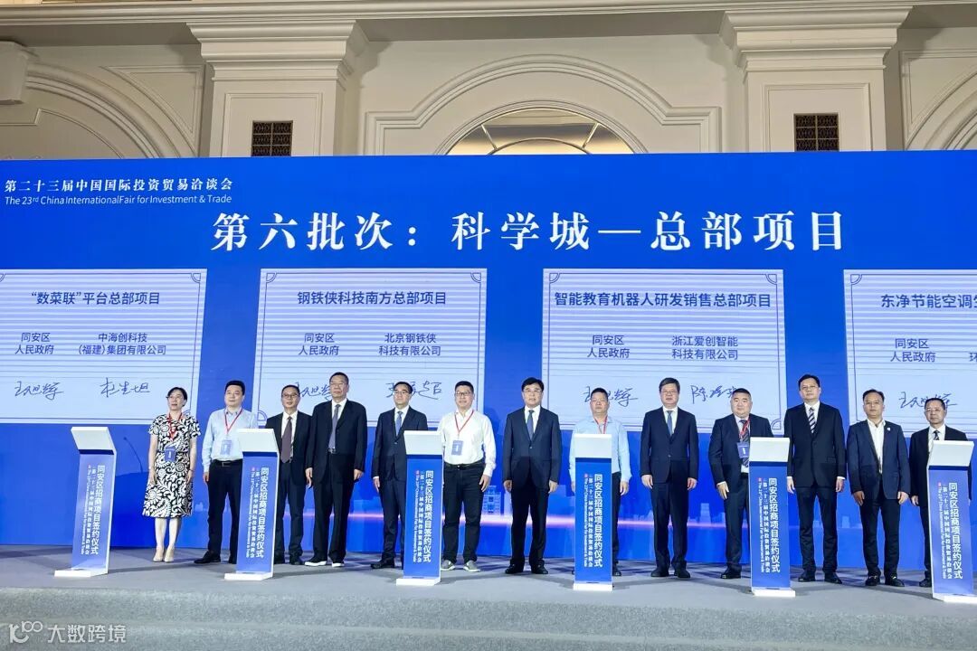 第二十三届中国国际投资贸易洽谈会期间,在厦门市人大常委会副主任张灿民、同安区区委书记王跃平、区长陈高润等领导的共同见证下,中海创与同安区政府就“数菜联”平台总部项目进行了合作签约仪式。中海创集团副总裁杜生坦代表中海创签署合作协议。