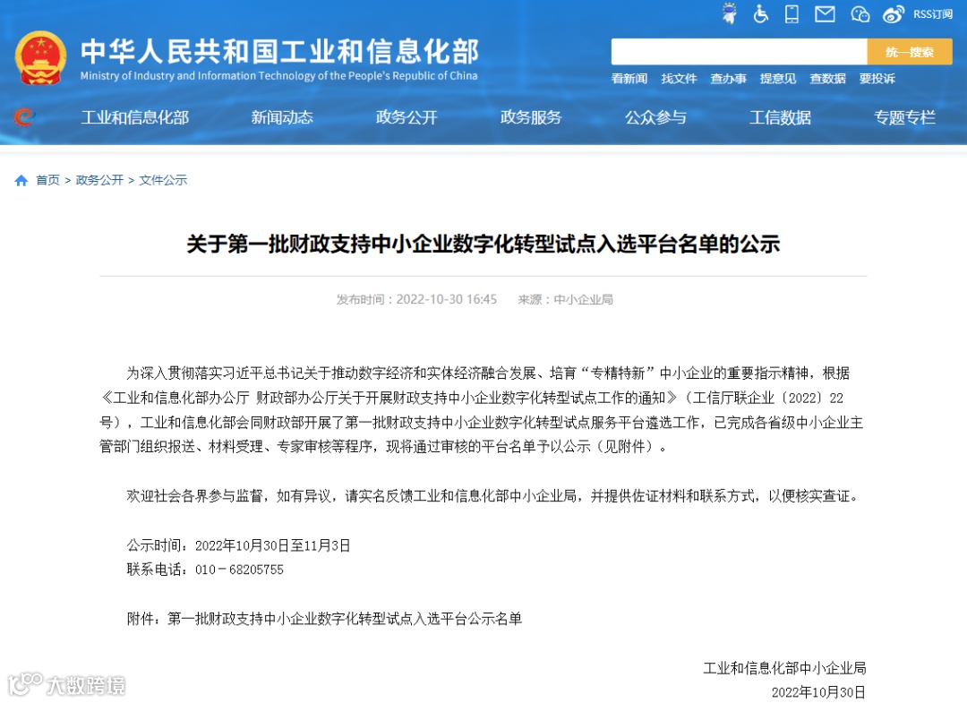 近日,工信部发布《第一批财政支持中小企业数字化转型试点入选平台公示名单》,共计全国98个平台(企业),中海创集团子公司福州市数字产业互联科技有限责任公司——长乐区纺织工业互联网平台成功入选。