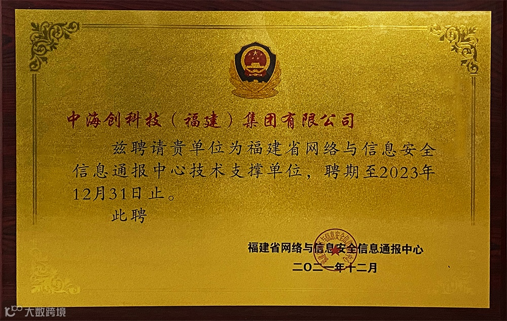 12月15日,福建省2021年网络与信息安全通报总结暨网络安全宣贯会在福州成功举办,会议通报了2022-2023年度省通报中心技术支撑单位,凭借卓越的工控系统安全防护能力以及本地化服务能力,中海创科技集团受聘成为“福建省网络与信息安全信息通报中心技术支撑单位”。