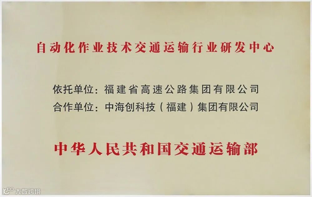 会议上举行了“自动化作业技术交通运输行业研发中心”(以下简称研发中心)揭牌仪式。研发中心是由福建省交通运输厅组织并推荐,以福建省高速公路集团有限公司为依托,联合中海创科技集团在内的12家国内一流高校、科研院所、高新企业共同申报,并于2020年11月获得交通运输部认定。