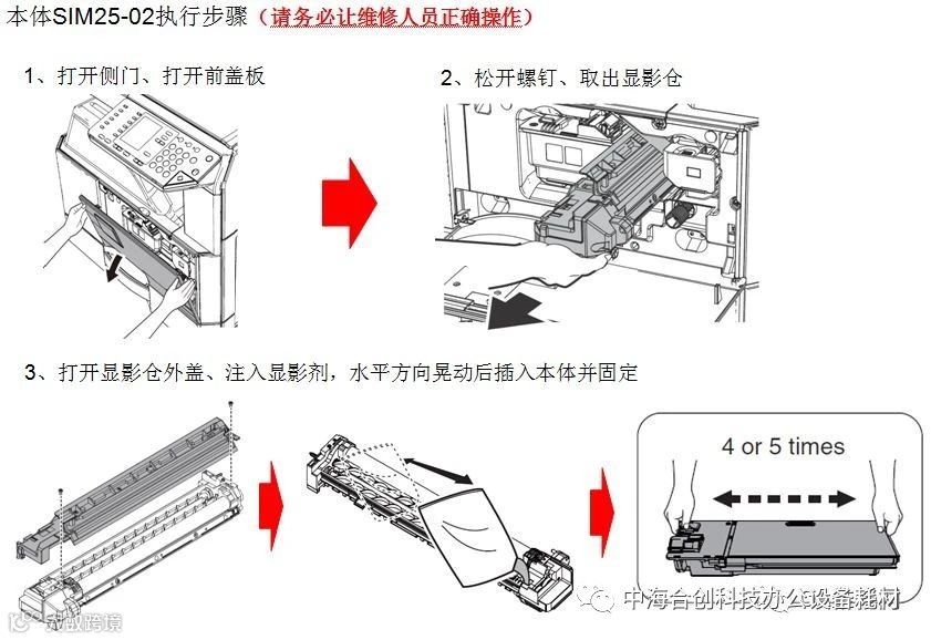 1、转动显影仓上的MG辊(显影仓驱动齿轮),使显影仓里面的载体在显影仓里均匀分布。