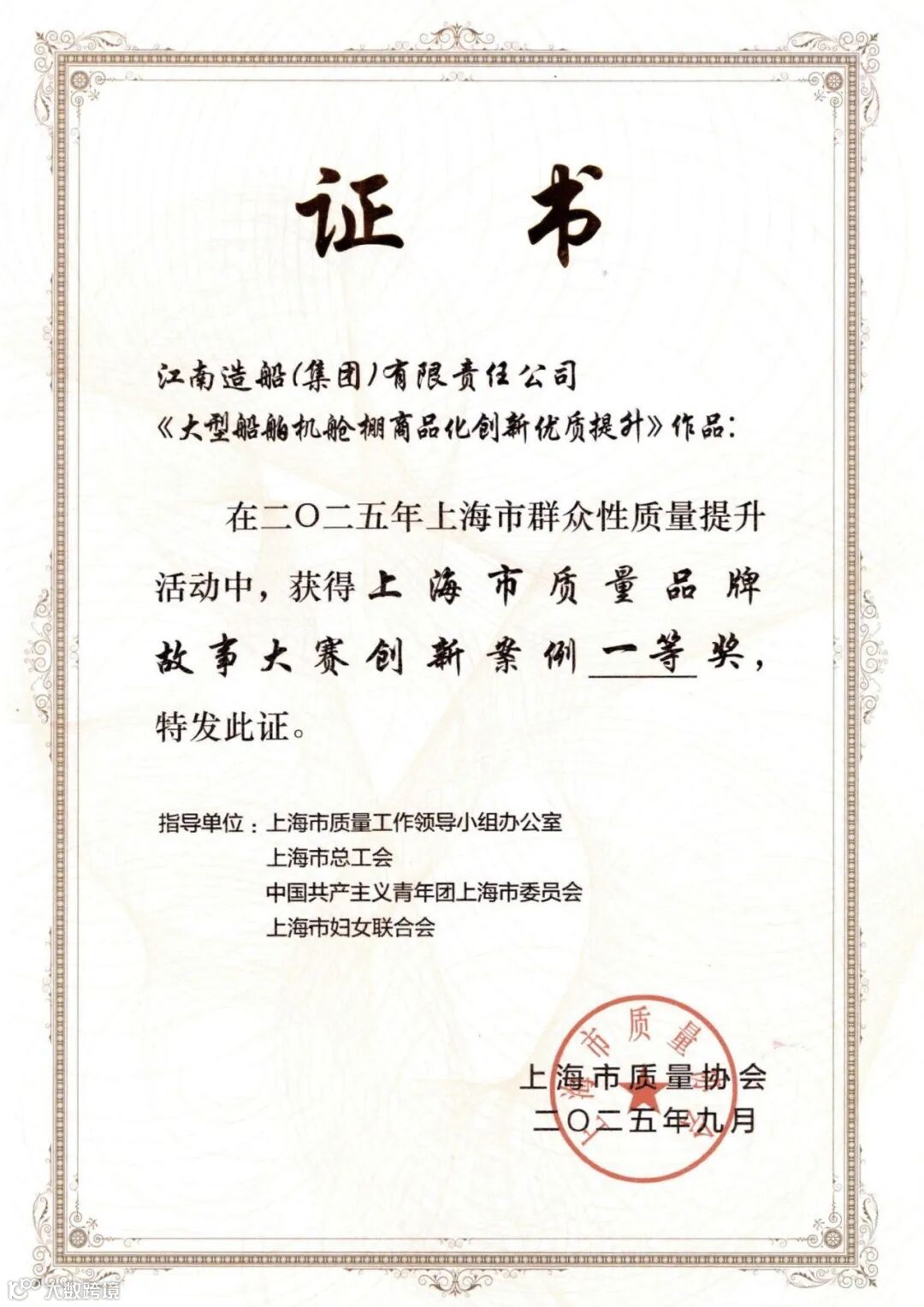 近期,上海市质量协会公布了2025年上海市质量品牌故事大赛获奖名单,公司《大型船舶机舱棚商品化创新优质提升》获上海市质量品牌故事大赛创新案例一等奖。