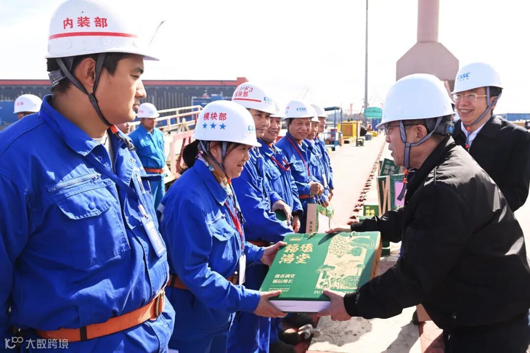 近日,上海市人大常委会副主任、党组副书记、市总工会主席郑钢淼,上海市总工会党组书记、副主席侯继军一行到中船江南造船开展慰问与工会工作调研,深入了解企业生产经营、职工权益保障及工会工作开展情况。中船集团工会工作部主任李忠,江南造船党委副书记、工会主席袁飞鹏及相关部门负责人参加。