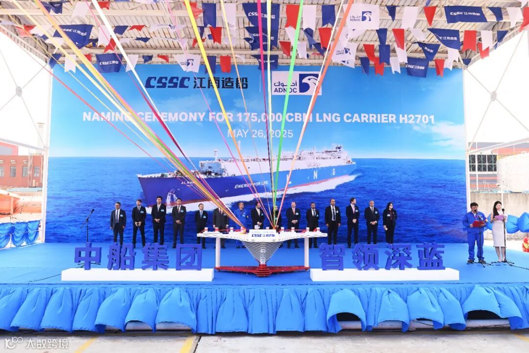 5月26日,中船集团江南造船为阿布扎比国家石油公司(ADNOC)建造的大型Mark III Flex薄膜式LNG船系列船第二艘船(H2701船)命名、签字交船仪式在公司举行。