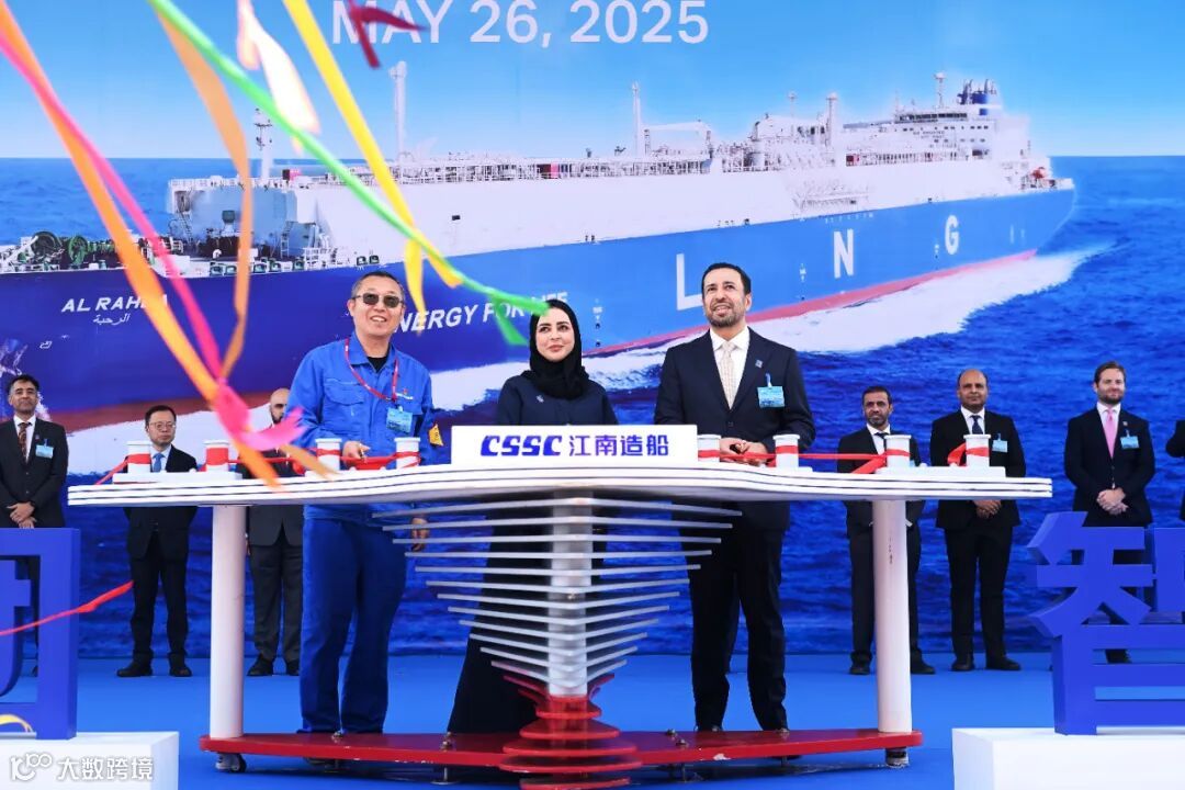 这一系列紧密相连且成果斐然的节点,标志着江南造船在大型 LNG 运输船建造领域迈入全新阶段,成功构建起自主设计与批量建造的坚实能力。凭借卓越品质与高效交付,江南造船赢得了ADNOC的高度认可,市场竞争力显著提升,成为全球LNG运输船建造市场中一道亮眼的中国名片,为我国在大型LNG运输船建造领域的高质量发展注入磅礴动力。