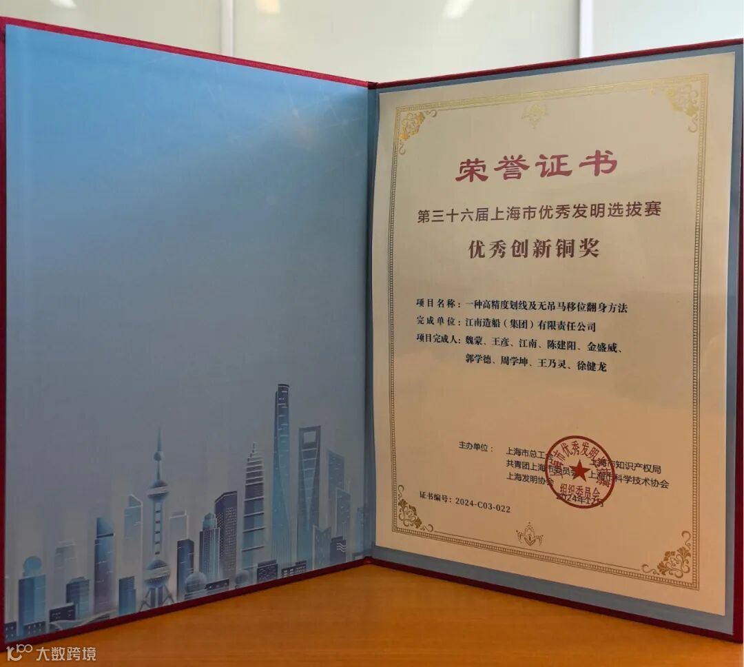 江南造船近期,由上海市总工会、上海市知识产权局等联合主办的“第三十六届上海市优秀发明选拔赛”评选中,公司荣获优秀发明银奖、优秀创新铜奖。