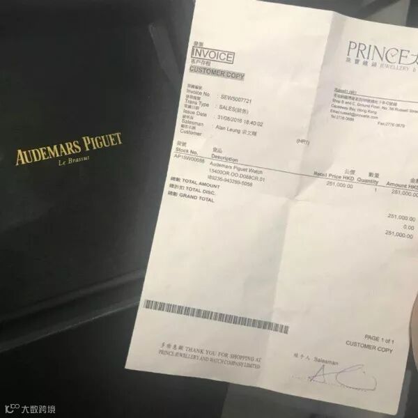 她新买的价值约25万港元的手表,