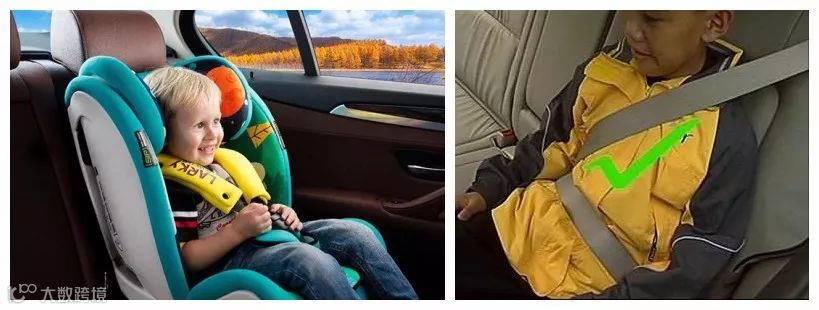 而4岁以下的儿童乘车应安装儿童座椅;12岁以下儿童乘坐后排,同时系好安全带。▼