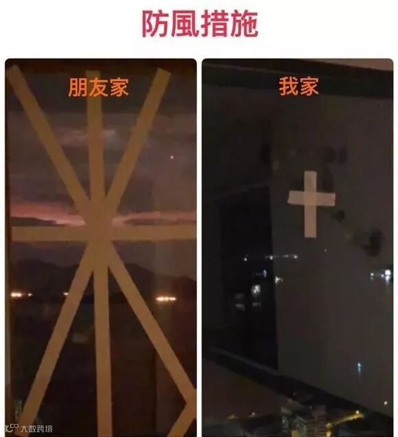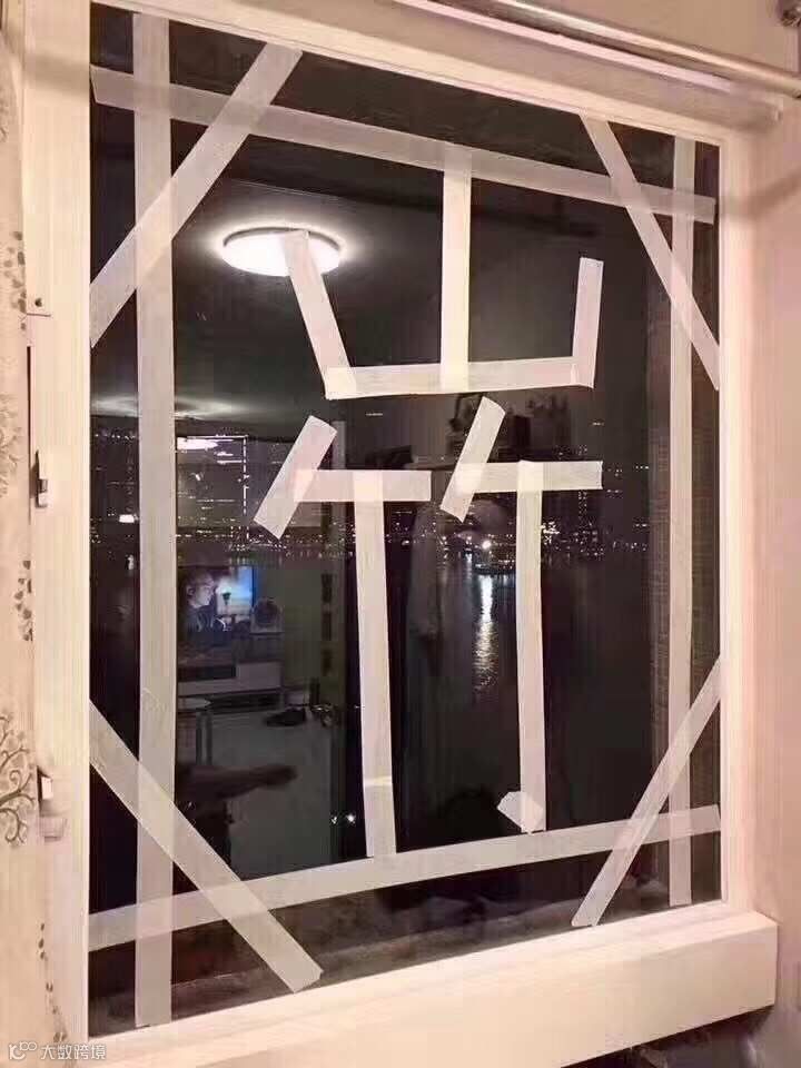 5. 如果你已经在结实的房屋里,则应小心关好窗户,在窗玻璃上用胶布贴成“米”字图形,以防窗玻璃破碎。
