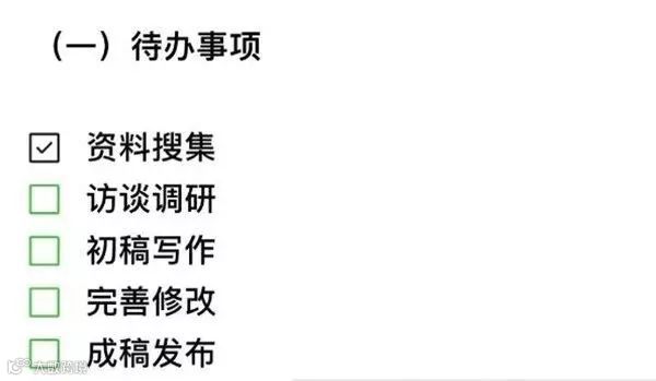 这个又有什么用呢?顾名思义,这个功能能帮助我们制定一些流程安排。比如当你需要处理的事项太多,你怕记不住,此时你可以在收藏的笔记功能里写下来,每完成一个任务就打上勾。这样是不是很清晰明了?