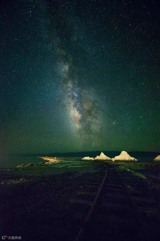 茶卡盐湖的夜晚,可以清晰地欣赏银河的浩瀚雄壮、流星的眩目诡异。