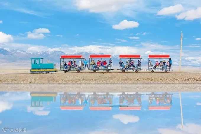 来到茶卡盐湖一定不能错过开往湖心的小火车。行驶在盐湖小铁轨,深入茶卡盐湖深处,去看最美的天空之镜。