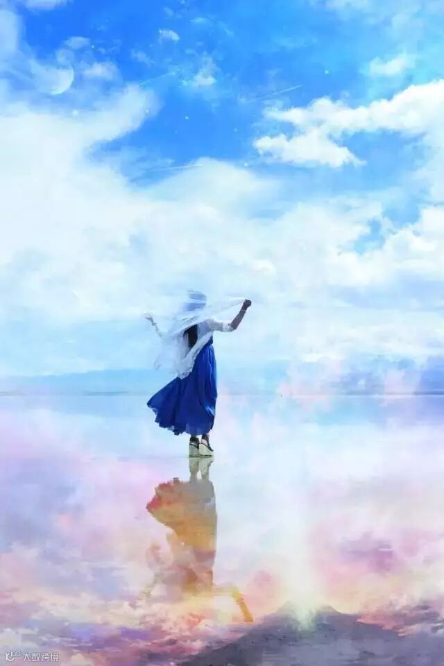 一片纯净的白与蓝,一面可以照耀天空的明镜,将世界看清,也看清自己。