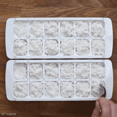 然后把洗衣粉在模具中压实,这样做出来一个个独立小方块。