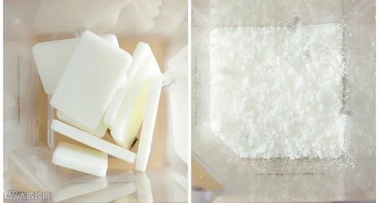先用工具把肥皂头刨碎,也可以用小刀刮成碎屑。