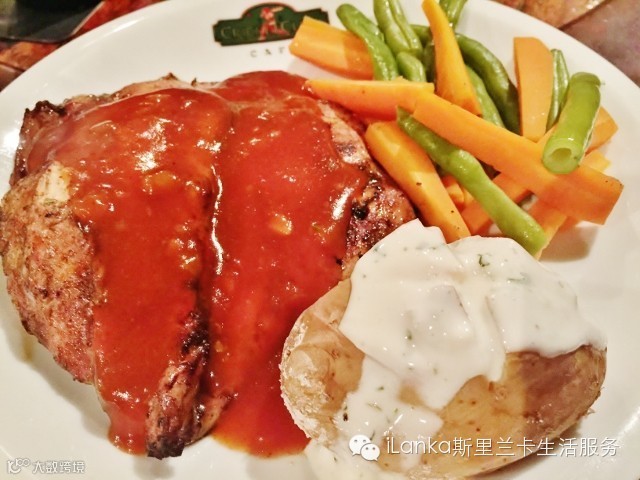 这么大块的烤鸡肉,乍一看,跟牛排似的,小编也是醉了!烤肉汁渗进鸡肉里,改善了烘烤带走水分的缺憾,让鸡肉的纤维更加柔软有弹性。烤土豆,是整颗土豆进行烘烤的,内部很绵软,连土豆皮都想吞下!还有西餐的典型配菜——胡萝卜和豆角,其中的豆角口感一般。