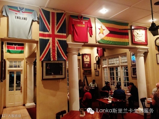 这算是家有特色的酒吧式西餐厅,上图是板球俱乐部餐厅的无烟区,也是进门后的第一个区域,墙壁上挂满了各国国旗、各国队服,和一些珍贵的老照片!