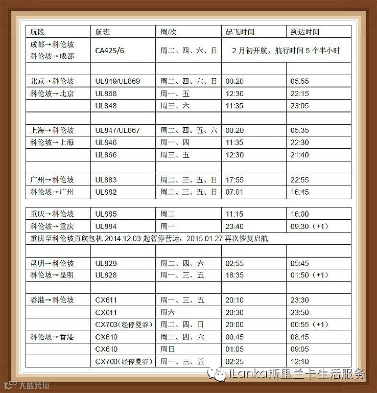 祖国各地直飞斯里兰卡的航班时刻表,可是小编费时费力精心制作的哦!如果对您有用的话,敬请收藏并转发!这是对小编最大的奖赏呢!