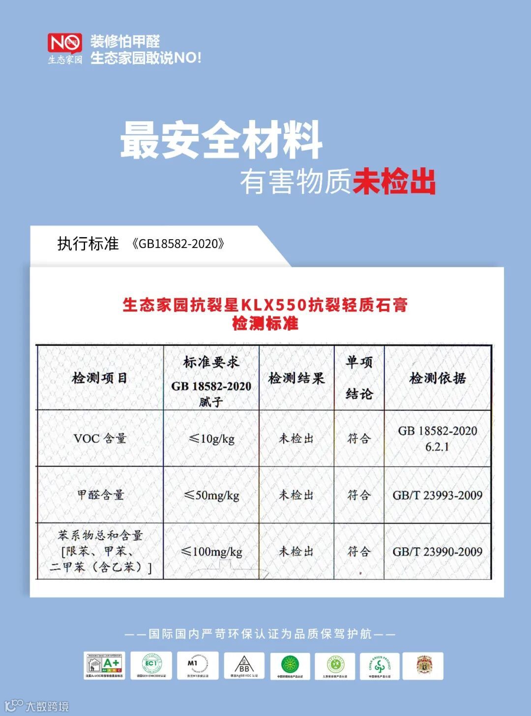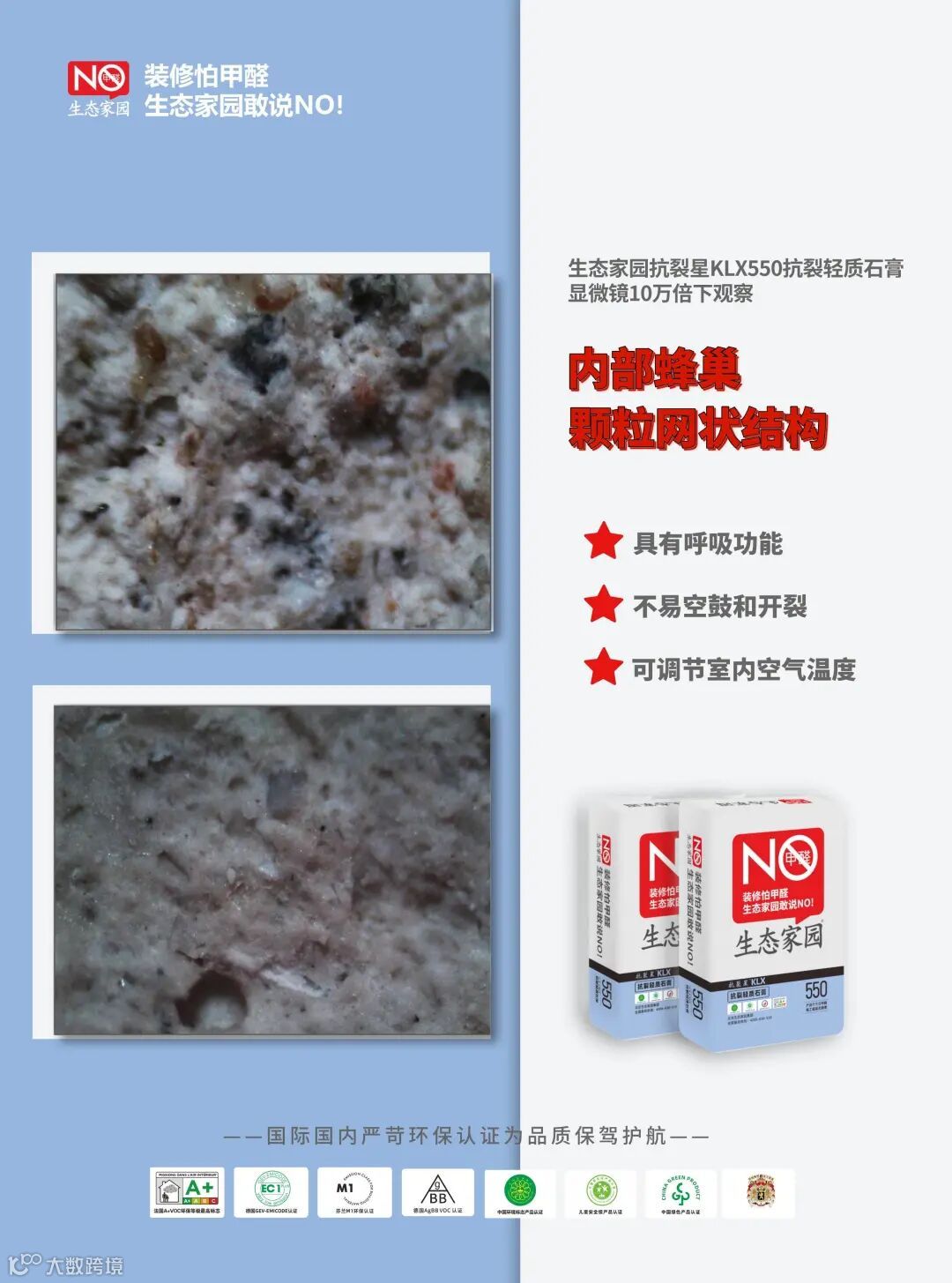 生态家园抗裂星klx550抗裂轻质石膏,主要成分是石膏、碳酸钙和添加剂等原材料,不含有害物质,对人体和环境无害,为健康保驾护航。