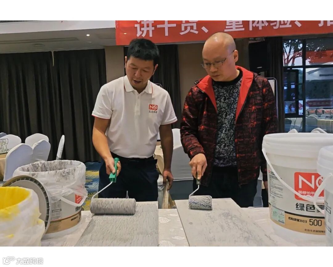借此机会刘经理也将生态家园最新推出的百囍衬1200艺术漆净味腻子、石膏板专用造毛界面剂及瓷砖专用造毛界面剂三款新品做了分享。新推出的百囍衬1200艺术漆净味腻子在乳胶漆之前批刮,它平整细腻无颗粒,让艺术漆的施工更加便利。