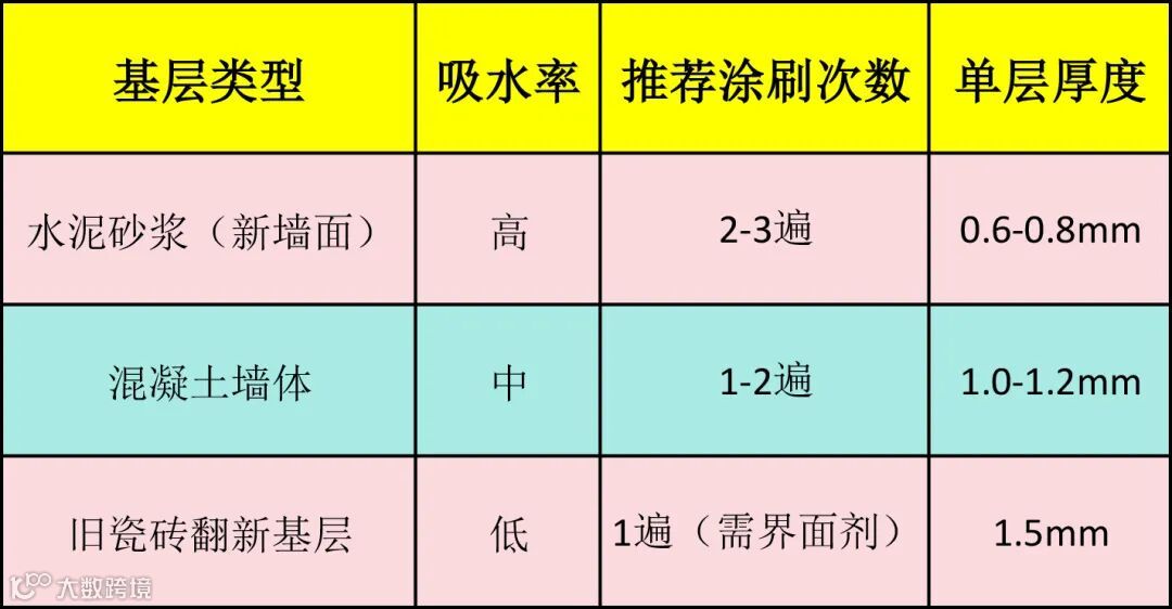 —涂刷前用喷雾器测试基层吸水速度,水渍10秒内消失需先润湿;