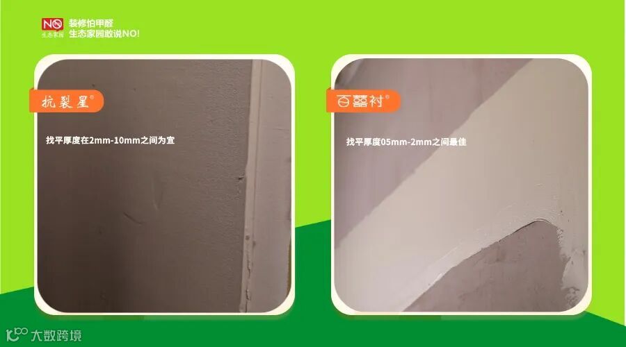 底层腻子:施工前,应将墙体表面清理干净,涂刷界面剂。施工过程中,注意控制刮涂厚度,避免过厚导致开裂。底层腻子又称厚找平,找平厚度在2mm-10mm之间为宜。。