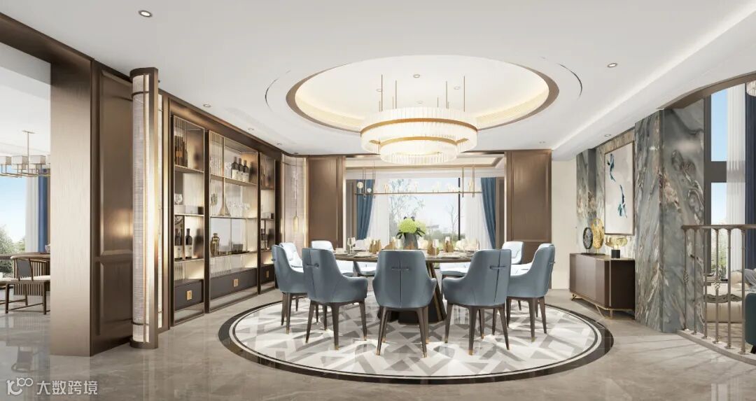餐厅常是公共区域的中转站,开放中保有着秩序,规整中亦能完整释放,除了完善的生活机能,金属与大理石岩板的融入让整个空间在时尚和现代中穿梭,搭配半开放餐边柜设计,不负精心烹制的美食,也不负一天里,最为珍贵的相聚时光。
