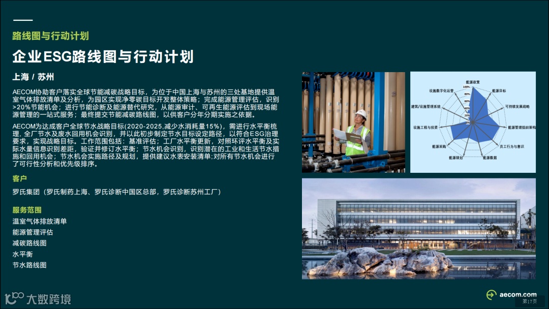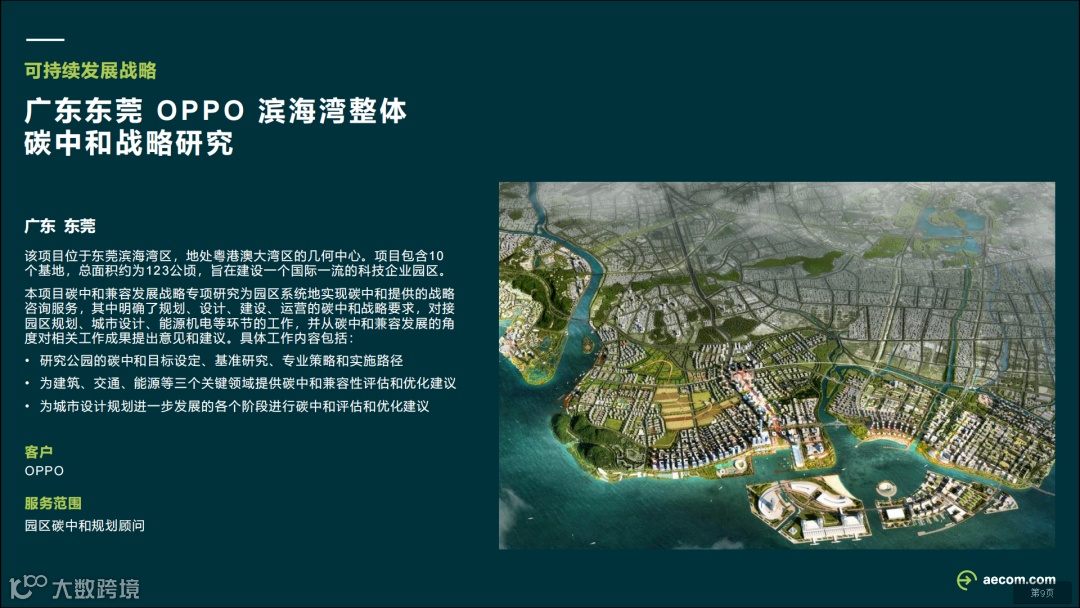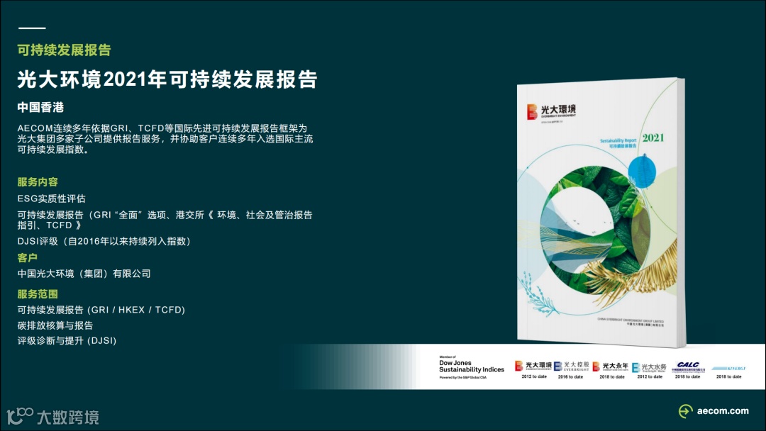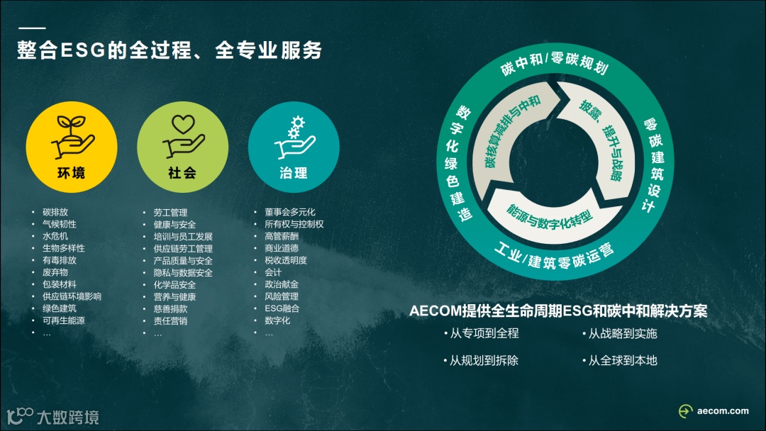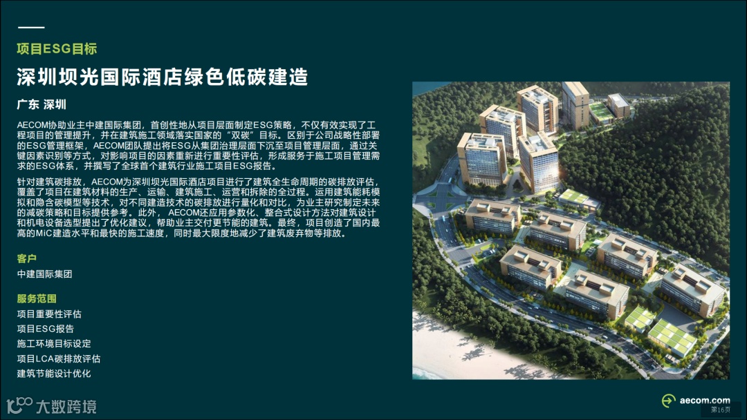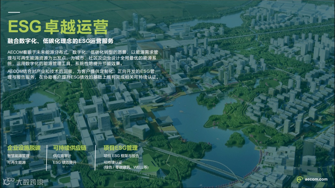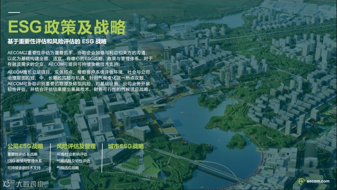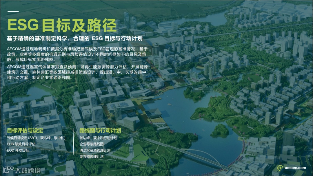 AECOM中国区规划总监雷禹先生分享讲到AECOM是一直以来都是致力于低碳设计的国际公司。非常注重整合ESG的全过程、全专业服务,在如何践行低碳领域方面有许多成功案例。AECOM中国区业务拓展总监陈雪荣特别提到ESG就是环境、社会、治理是专项到全程,战略到实施,规划到拆除,全球到本地的系统专业服务。