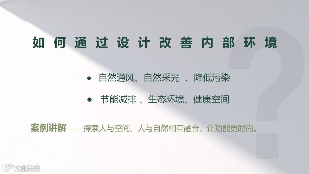 海外装饰设计研究院副院长吴开城由一段童年的故事讲起,童年往事给了吴开城先生一生职业的启发。希望通过设计唤醒人们对绿色低碳生活方式的思考,对自然的引入聊聊我们的未来。设计应该如何引导生活,让自然融入生活,让空间更具有生命力,是我们要实现的设计价值。需要从内部环境和外部环境解决绿色低碳问题,再谈到如何解决人的诉求,从内部有限的条件做设计创造,改善内部环境实现节能减排低碳生活。