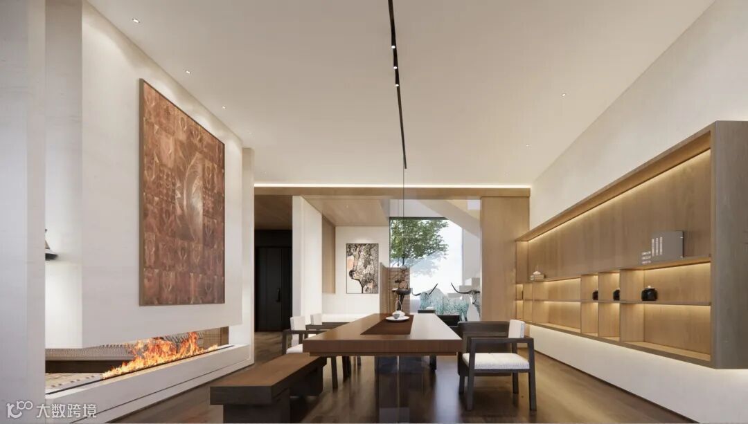楼王在个空间独立的情况下,又有微妙的关联,用吊装的电视背景墙与半通透的花格折窗区分空间,让空间更加大气整体,又能保证私密性。同时高配的度假家私,提升整体空间的品质。