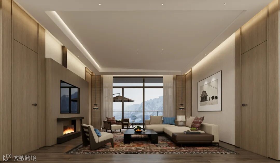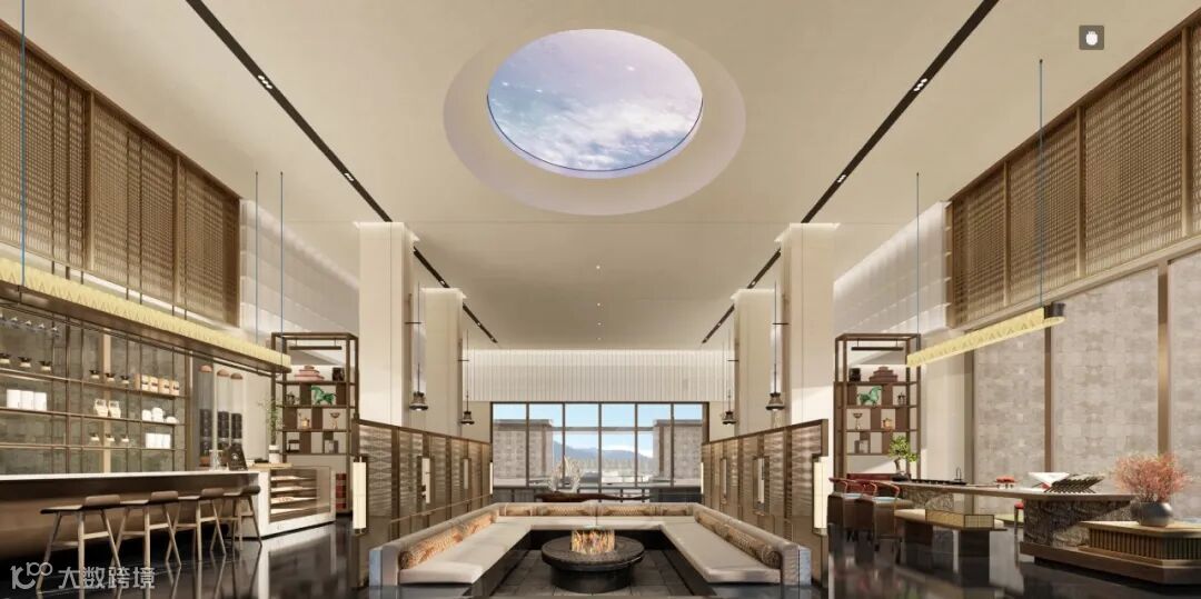 水吧区整合了大堂吧的服务功能,中间的下沉区域围合着电子火炉,让宾客能体验着极具名族特色的火塘文化,同时营造出温暖的体验。右侧品茶区丰富了大堂的功能配置又能增加酒店运营价值,原木純粹的材質、藏族的饰品的点缀,帶著轻松的質感拥自然入懷,阳光下行让客人欣赏藏地自然美学。