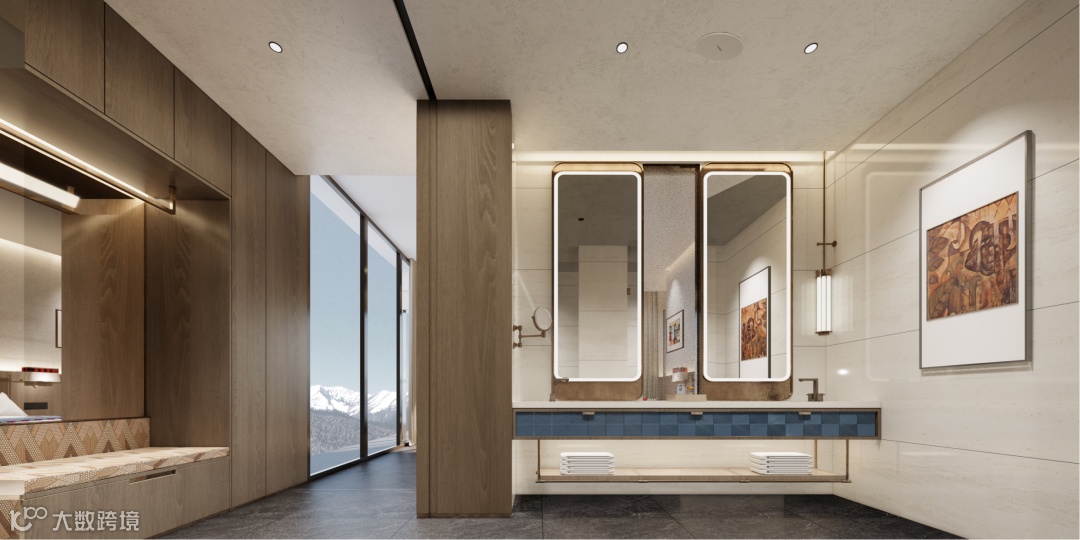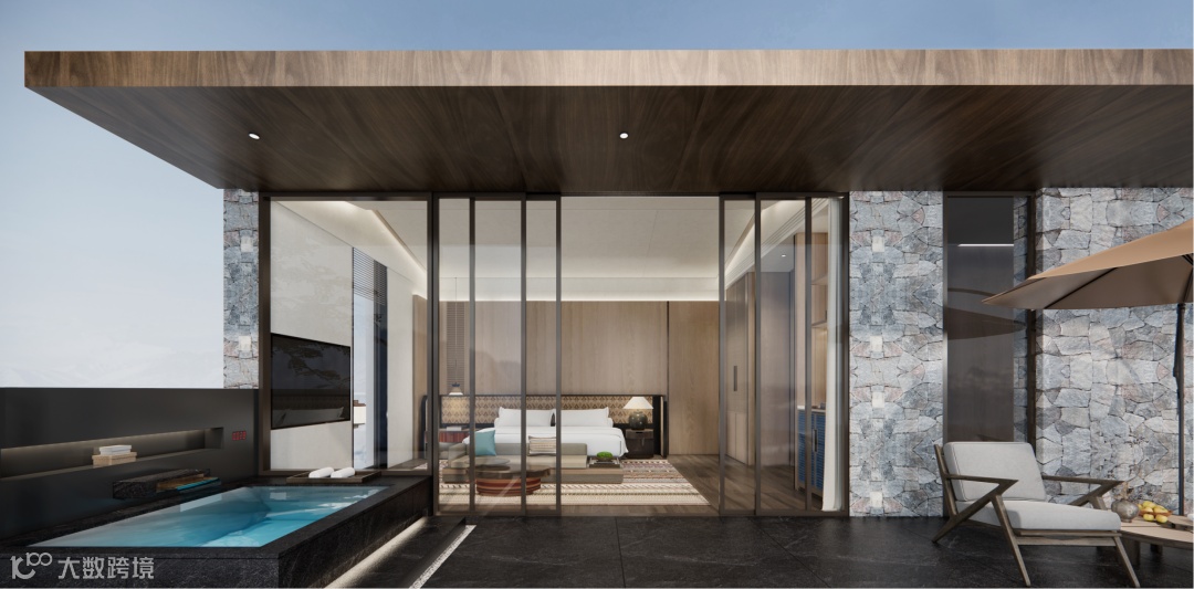 独栋式别墅客房强调现代简洁风格以及舒适度假感,点缀的藏元素纹理则呼应了地域的文化特征。